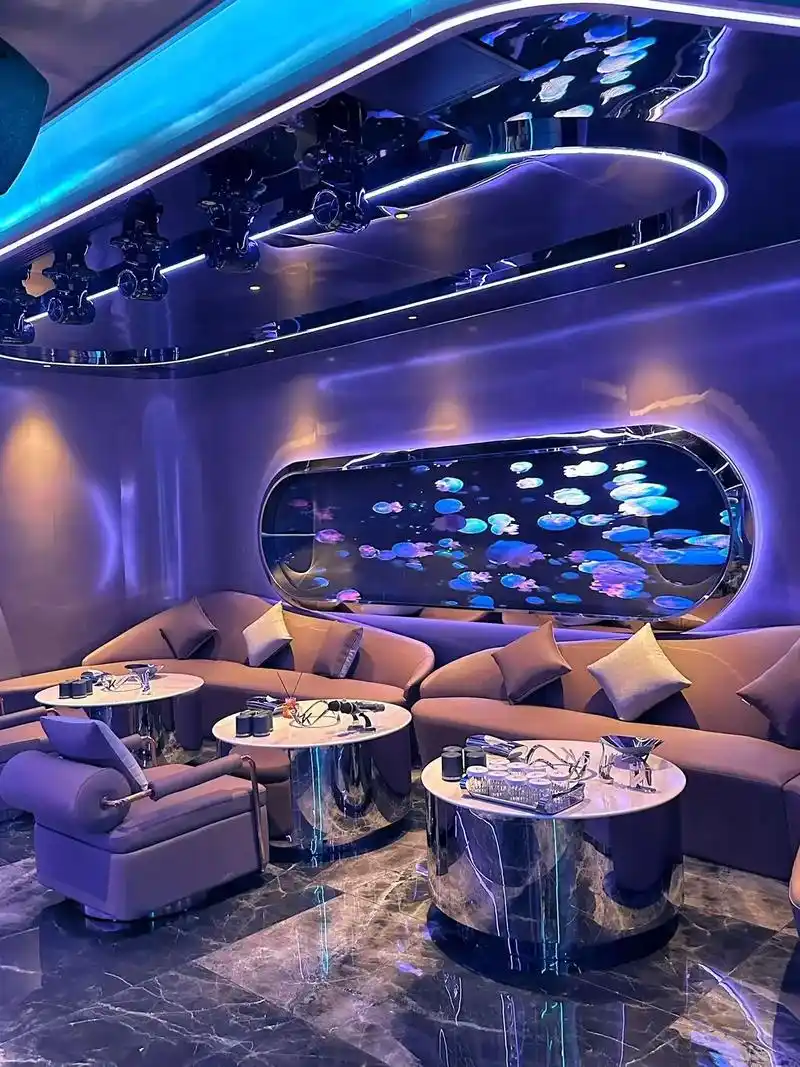 这里,是商务洽谈与休闲娱乐完美融合的典范。高端大气的包厢设计,搭配先进的音响设备,让你的歌声更加动人,每一次的演唱都仿佛置身于专业舞台。无论是团队建设,还是朋友聚会,都能在这里找到属于你们的独特氛围。